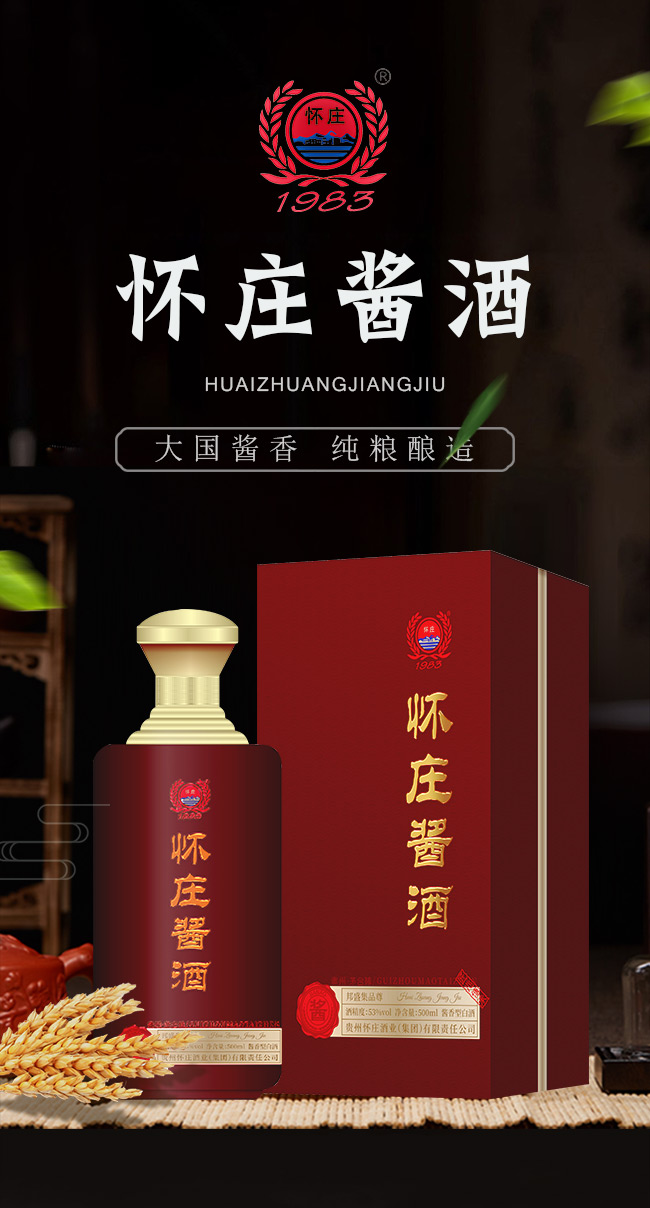 貴州懷莊酒業(集團)有限責任公司組建于1983年,是醬香型白酒原產地—貴州省仁懷市茅臺鎮較早的民營釀酒企業。集團公司總部位于茅臺鎮懷莊路009號,現有員工1000余人,注冊資金5088萬元,是集產、供、銷于一體的實體酒類集團企業。