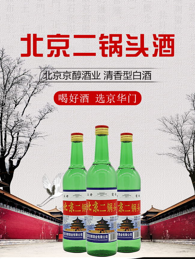 北京京醇酒業(yè)有限公司始建于一九八一年,是由千年歷史的老燒鍋酒發(fā)展而來(lái)。配以先進(jìn)科學(xué)技術(shù)精釀而成的京華門牌二鍋頭系列白酒,是清香型白酒的典型代表。