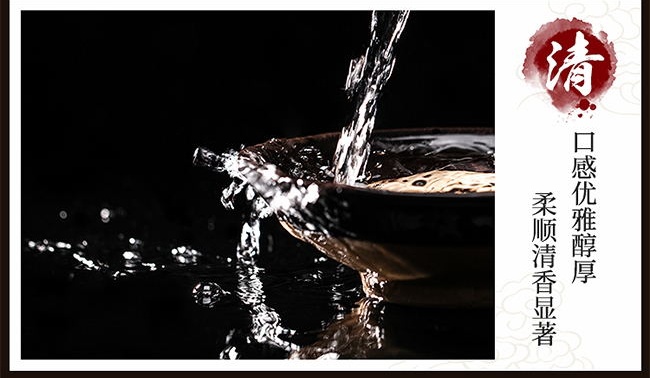口感:入口綿甜,香味協調,醇厚爽冽,尾凈香長、風格突出