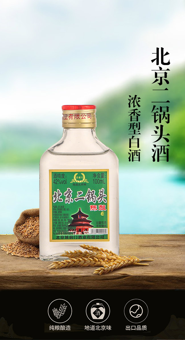 產品名:京陽門北京二鍋頭酒陳釀濃香型白酒【42°100ml】