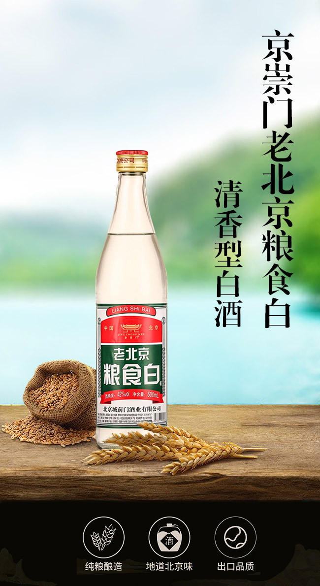 產(chǎn)品名:京崇門老北京糧食白酒清香型白酒【42°500ml】