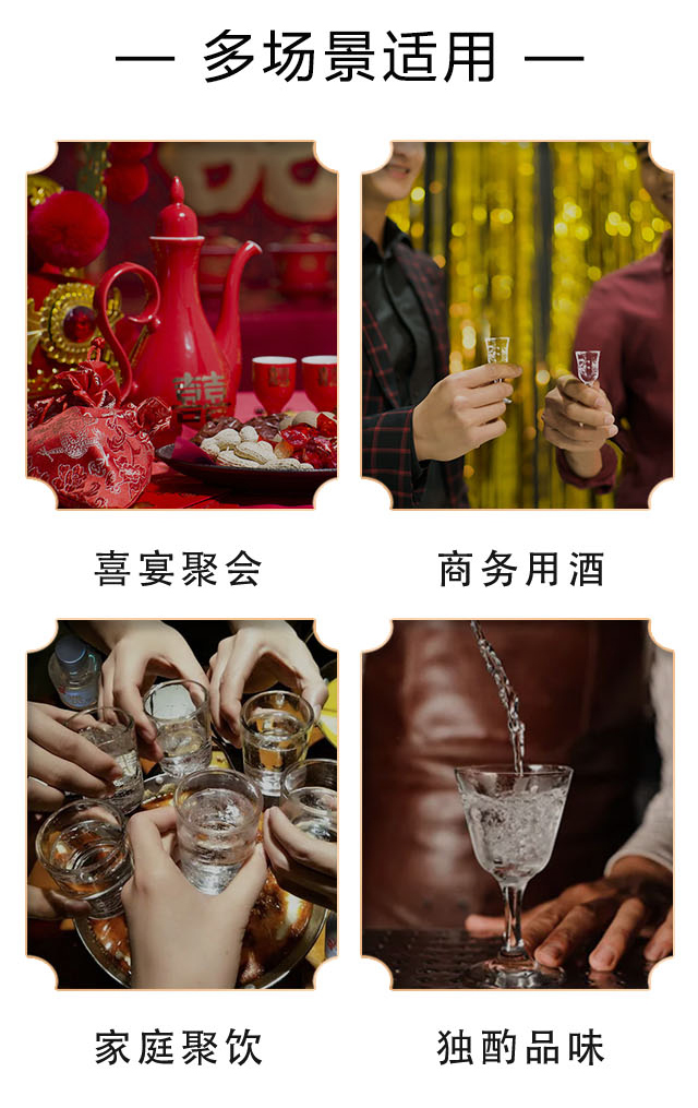 適飲場合:商務(wù)宴會、團圓小酌、婚慶宴席、節(jié)日送禮、收藏