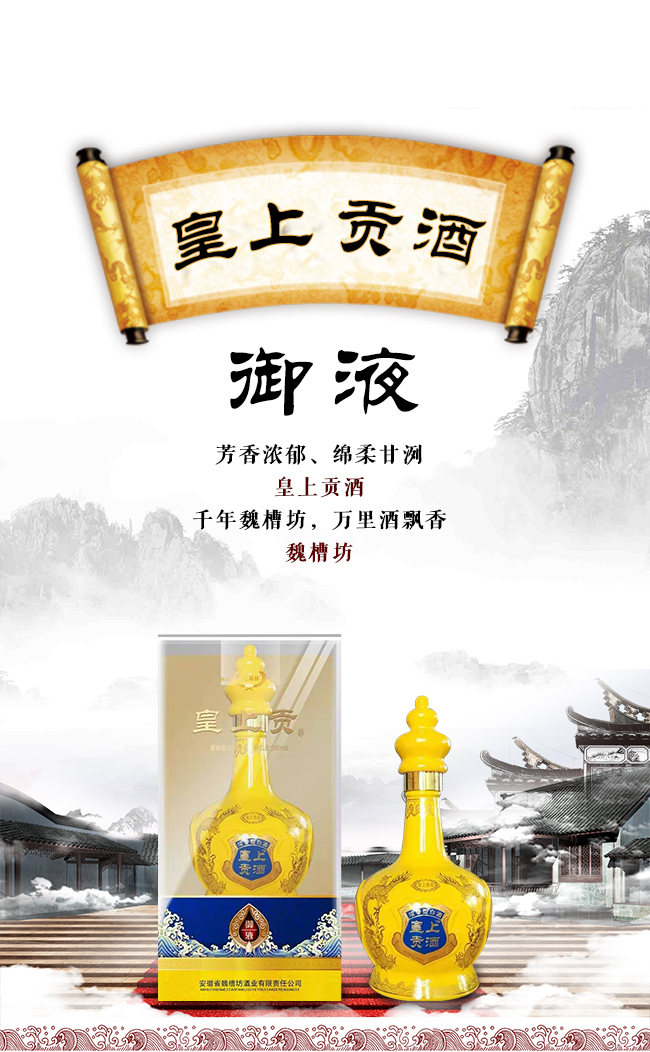安徽魏槽坊酒業有限責任公司座落在華夏酒城安徽白酒之鄉——亳州市古井鎮。地處大京九鐵路沿線,自古以來,人杰地靈、物華天寶、資源豐富。公司釀造的白酒是通過“擇層取醅”、“擇時摘酒”等傳統技術,得到精華的原漿美酒,再放入地下酒庫經陶壇洞藏一定年限,使其自然老熟。