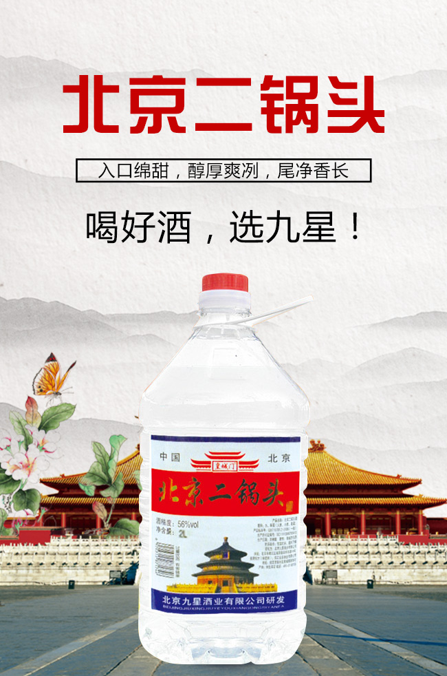 產(chǎn)品名:皇城門北京二鍋頭酒56°2L