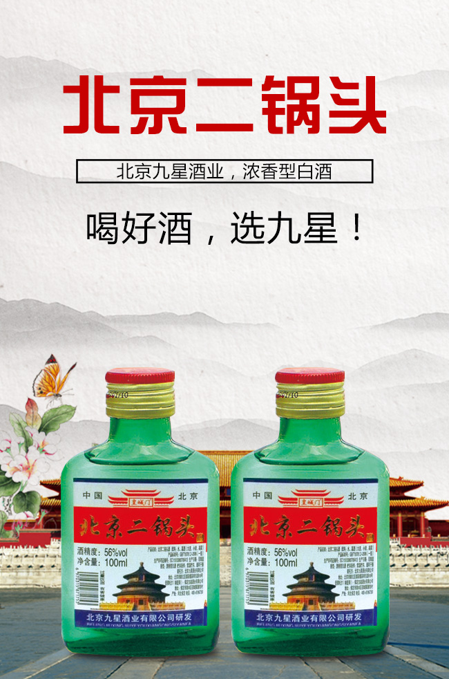 產(chǎn)品名:皇城門北京二鍋頭酒56°100ml