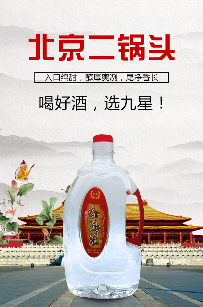 北京九星酒業有限公司是一家集產品研發,生產銷售為一體的現代化白酒規模企業。目前開發的主要是皇城門系列白酒產品。是以優質高粱為主要原料,用大麥、小麥、豌豆制成大曲,輔多種微生物為糖化酵劑,再經過長期發酵,緩慢蒸餾,取之精華,經多年陳貯后,精心勾兌而成。以“清香幽雅,醇厚綿甜,尾昧爽凈”的獨特風格,深受各界朋友的青睞。