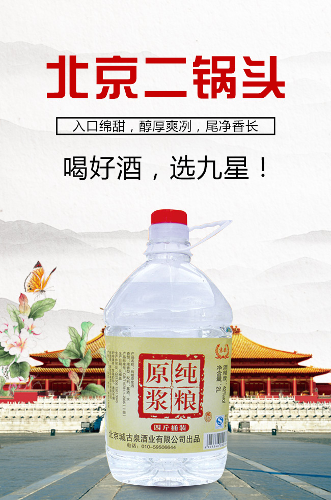 北京九星酒業(yè)有限公司是一家集產(chǎn)品研發(fā),生產(chǎn)銷售為一體的現(xiàn)代化白酒規(guī)模企業(yè)。目前開發(fā)的主要是皇城門系列白酒產(chǎn)品。是以優(yōu)質(zhì)高粱為主要原料,用大麥、小麥、豌豆制成大曲,輔多種微生物為糖化酵劑,再經(jīng)過長期發(fā)酵,緩慢蒸餾,取之精華,經(jīng)多年陳貯后,精心勾兌而成。以“清香幽雅,醇厚綿甜,尾昧爽凈”的獨(dú)特風(fēng)格,深受各界朋友的青睞。
