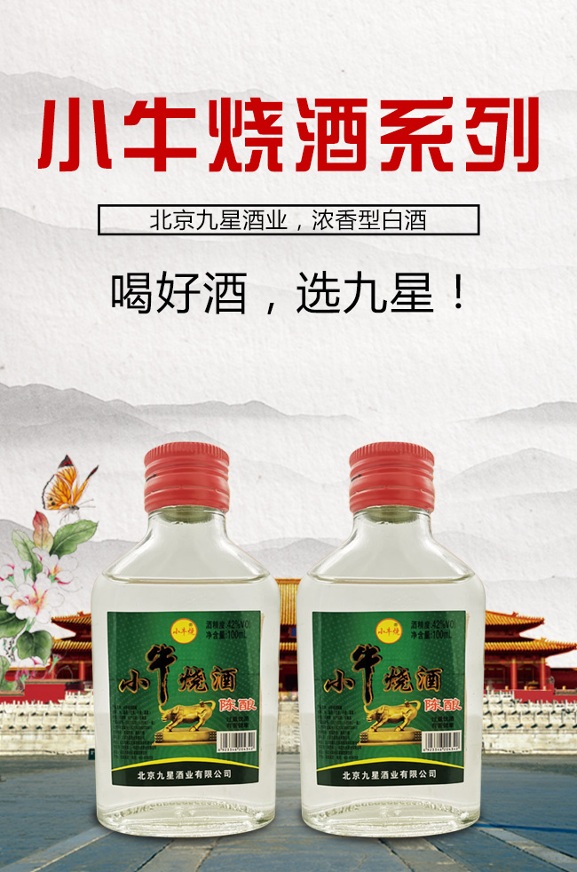 產品名:小牛燒酒陳釀42°100ml濃香型白酒綠標