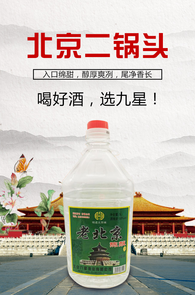 產(chǎn)品名:皇城門老北京陳釀酒50°5L濃香型白酒