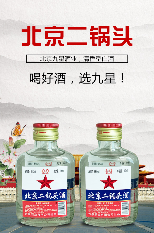 產品名:京恭北京二鍋頭酒白瓶56°100ml清香型白酒
