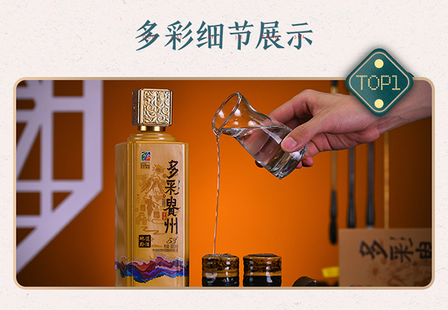 多彩貴州酒產(chǎn)于貴州茅臺鎮(zhèn),以本地優(yōu)質(zhì)糯高粱、小麥、水為原料,利用得天獨(dú)厚的自然微生物環(huán)境,遵循具有悠久歷史的傳統(tǒng)工藝精釀而成,并由大師級團(tuán)隊(duì)精選、勾調(diào)、品評,認(rèn)定;融合了“釀造、文化、品牌、自信”等多彩元素。