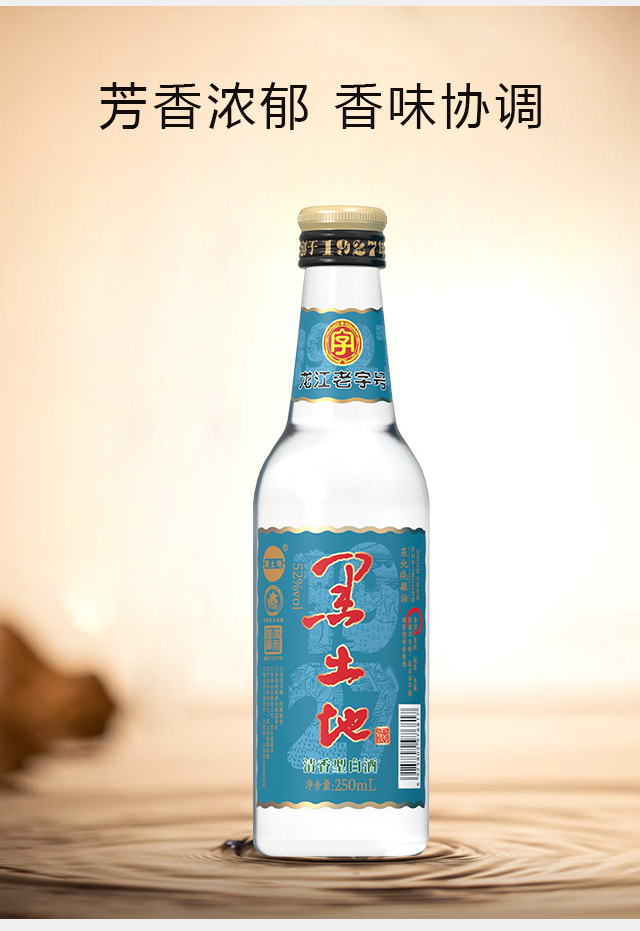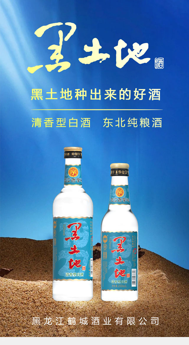 “黑土地”牌系列白酒是黑龍江鶴城酒業有限公司的核心品牌,現有100多個品種,精選東北特產“大蛇眼”高粱為主料,經泥窖發酵、陳年貯存、精釀而成,年產65°白酒1200噸,其品質具有芳香濃郁、香味協調、余香悠長爽凈之特點。
