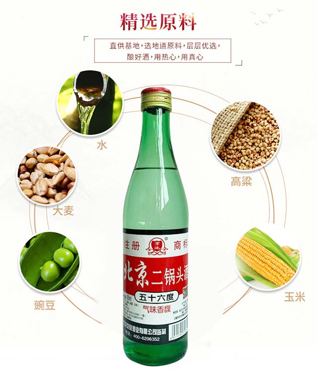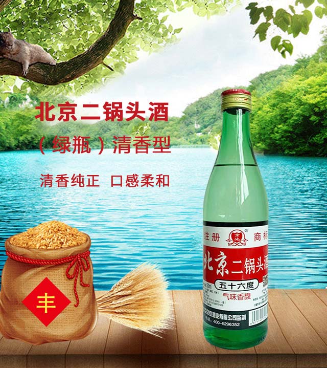 產品名:京良北京二鍋頭酒(綠瓶) 清香型白酒【56° 500ml】