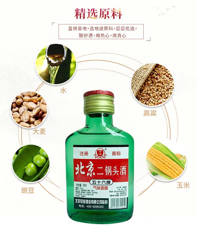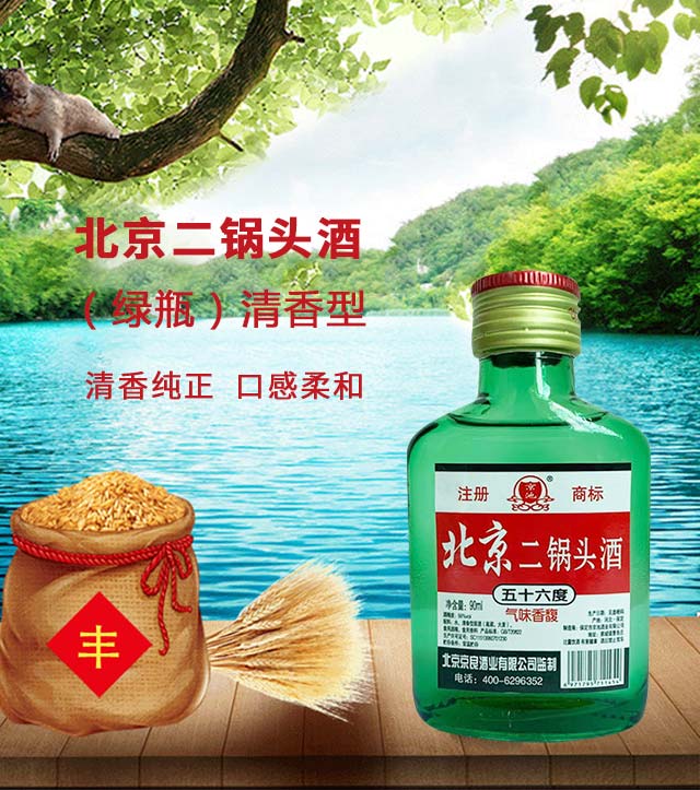 產品名:京良北京二鍋頭酒(綠瓶) 清香型白酒【56° 90ml】