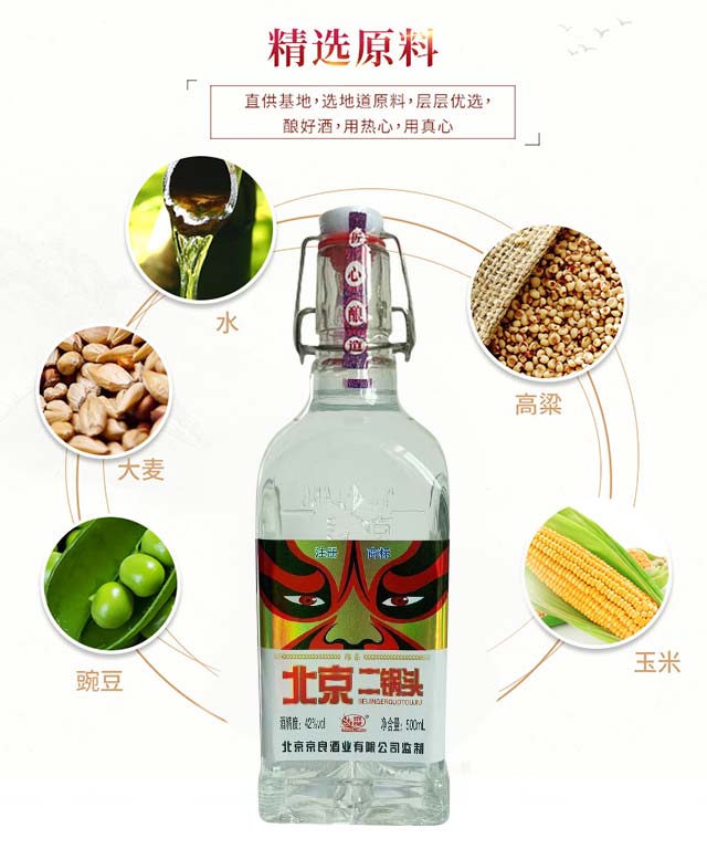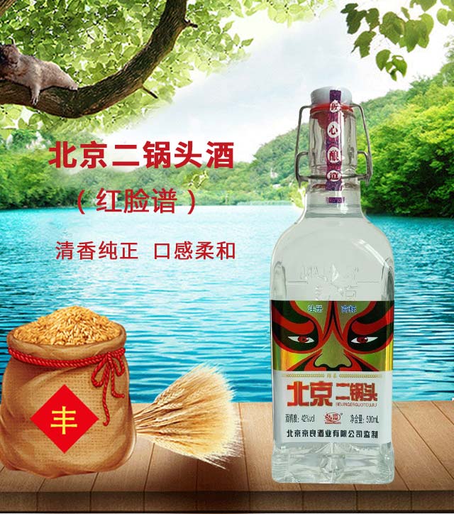產品名:京良北京二鍋頭酒(紅臉譜) 清香型白酒【42° 500ml】