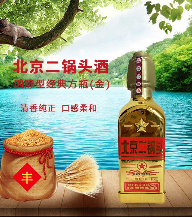 產品名:京良北京二鍋頭酒國際型經典方瓶(金) 清香型白酒【42° 500ml】.