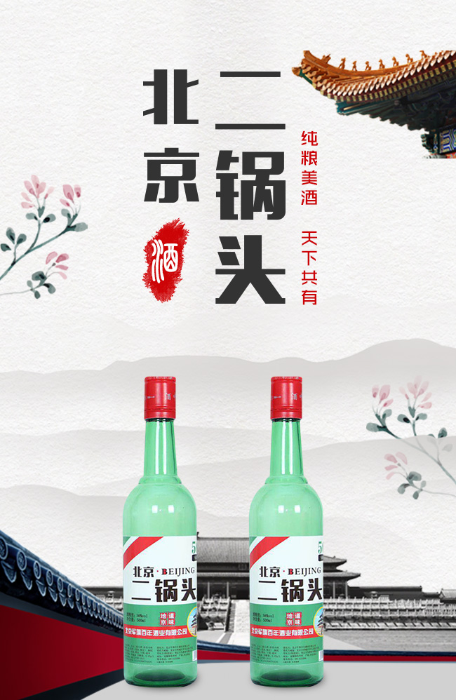 公司本著質量為主,信譽至上的原則經營北京二鍋頭酒,獲得了客戶的高度評價。北京二鍋頭酒歷史悠久,工藝考究,以優質高梁為主要原料,用大麥、小麥、豌豆制成大曲,輔多種微生物為糖化發酵劑,再經長期發酵,緩慢蒸餾,取之精華,經十余年陳貯后,精心勾兌而成。