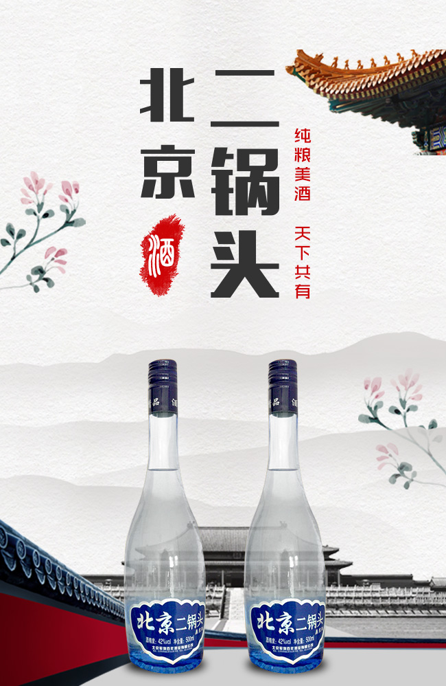 公司本著質量為主,信譽至上的原則經營北京二鍋頭酒,獲得了客戶的高度評價。北京二鍋頭酒歷史悠久,工藝考究,以優質高梁為主要原料,用大麥、小麥、豌豆制成大曲,輔多種微生物為糖化發酵劑,再經長期發酵,緩慢蒸餾,取之精華,經十余年陳貯后,精心勾兌而成。