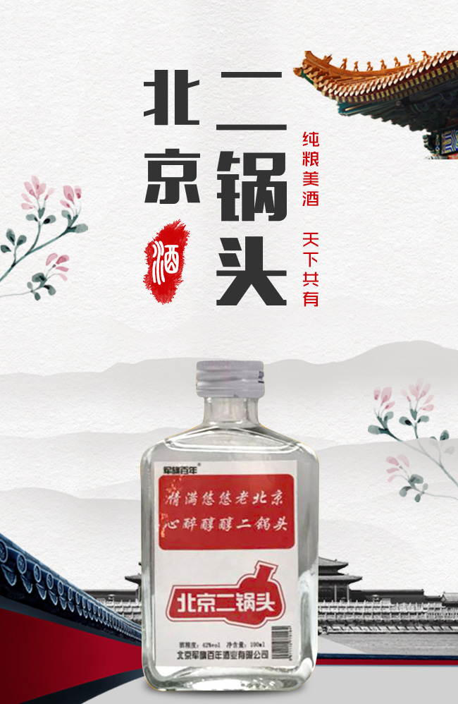 產品名:軍旗百年北京二鍋頭酒(情滿悠悠)42°100ml