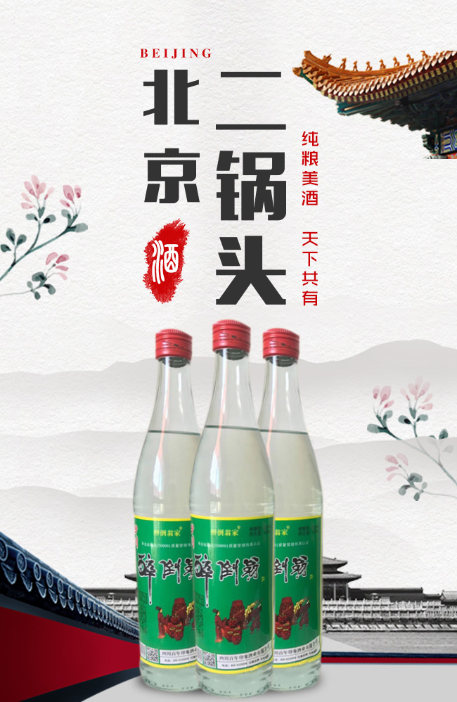 公司本著質量為主,信譽至上的原則經營北京二鍋頭酒,獲得了客戶的高度評價。北京二鍋頭酒歷史悠久,工藝考究,以優質高梁為主要原料,用大麥、小麥、豌豆制成大曲,輔多種微生物為糖化發酵劑,再經長期發酵,緩慢蒸餾,取之精華,經十余年陳貯后,精心勾兌而成。