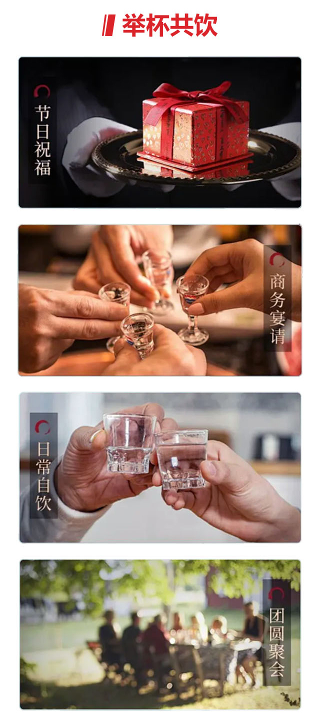 適飲場合:家庭聚會、自斟自飲、禮節(jié)拜訪、商務(wù)宴請、收藏等