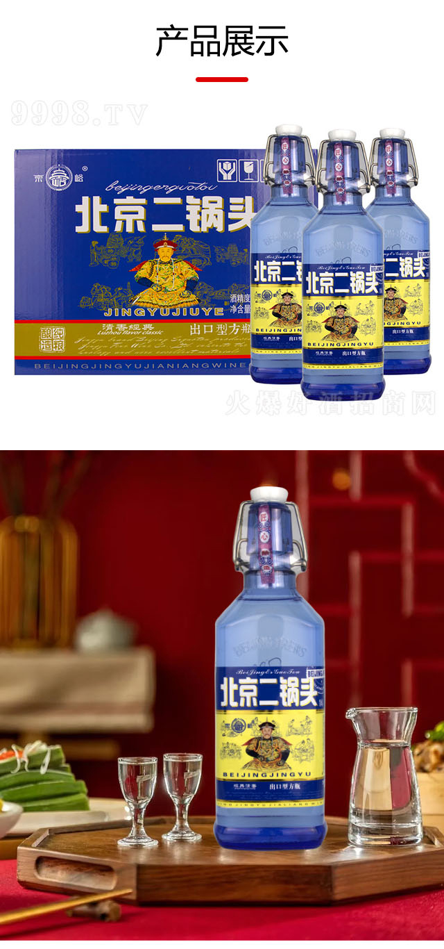 品名:京峪北京二鍋頭酒出口型方瓶·卡扣藍 清香型【42° 500ml×12瓶】