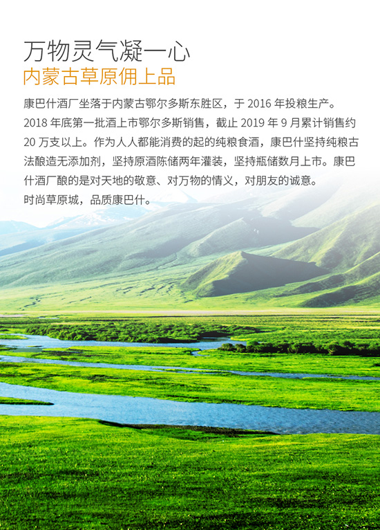 內蒙古康巴什酒廠坐落于鄂爾多斯市裝備制造基地,交通便利,公司主要業務為“康巴什”品牌系列的清香型白酒生產及銷售,“康巴什”酒采用傳統地缸發酵工藝純糧釀制而成。