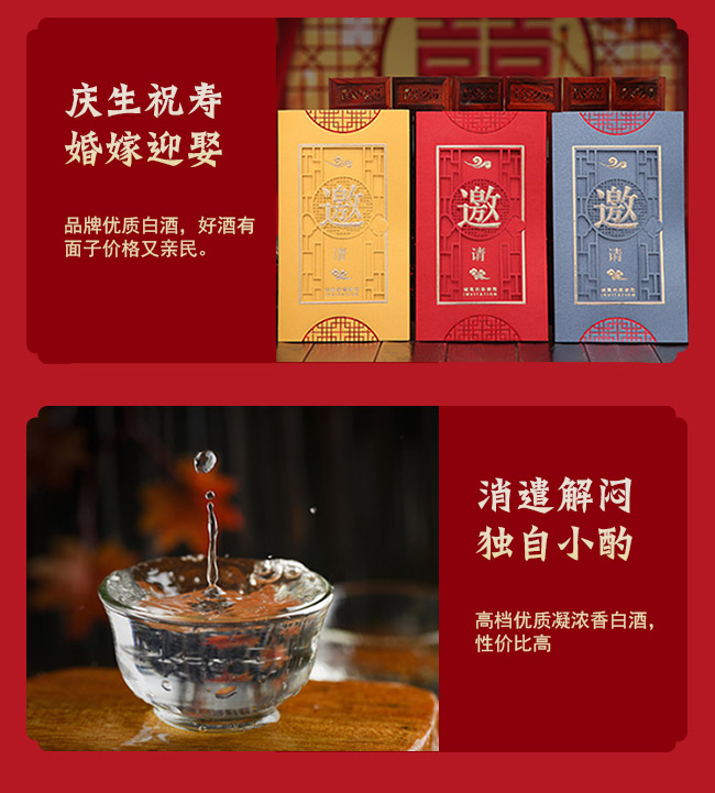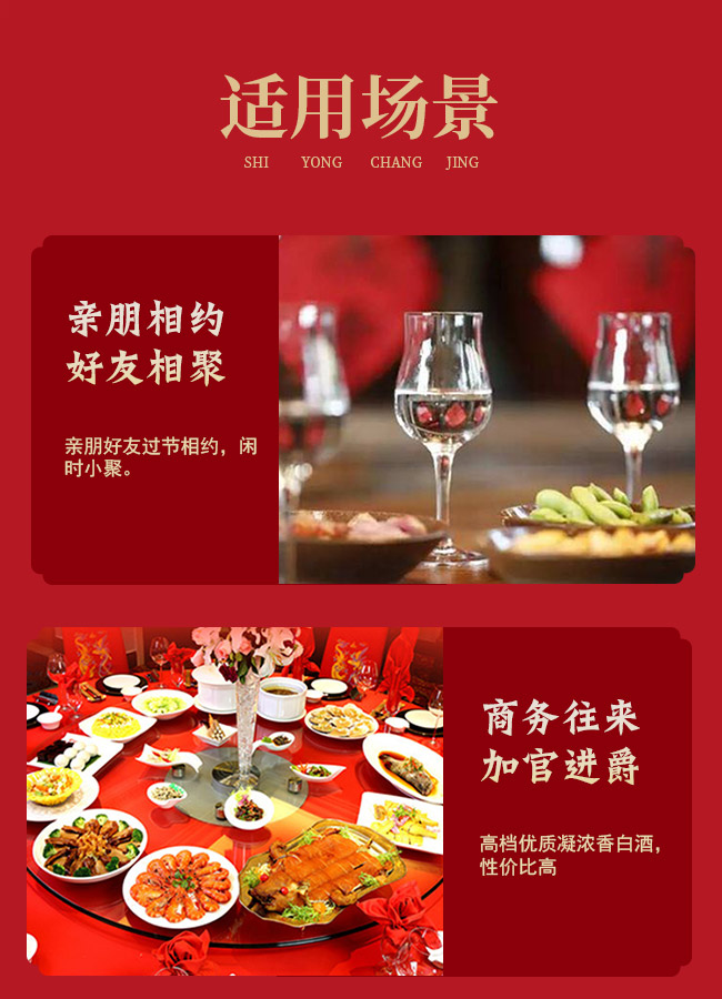 適飲場合:商務宴會、團圓小酌、婚慶宴席、節日送禮、收藏等