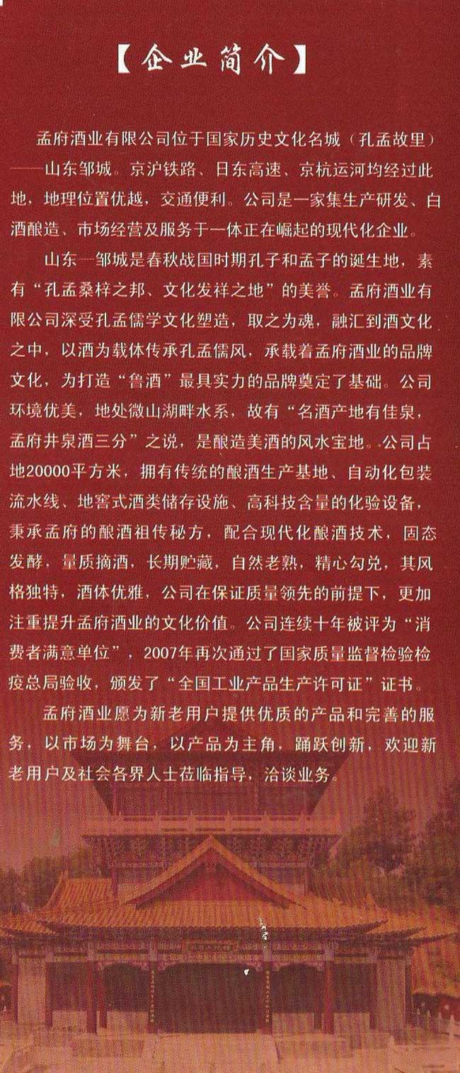 產品簡介:孔孟家莊園濃香型酒招商【42度500ml】