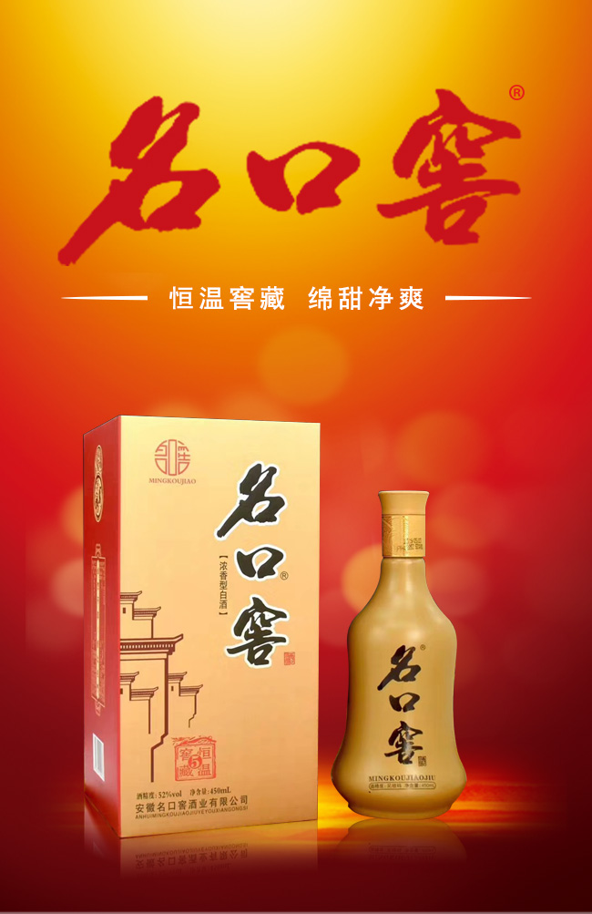名口窖酒產自中名酒之鄉-古井鎮,名口窖酒為真產地、真工藝、真釀造 ,傳承古法釀造,傳統工藝精心釀造而成。篩選優質飽滿的高糧、小麥、大麥、豌豆,加以清純的古井深泉地下水釀造出優質的白酒,公司目前擁有名口窖系列酒、銘井原漿系列、名口窖生態原漿系列、VIP貴賓團購和私家定制酒等系列產品。主推品牌“名口窖酒”,目前公司產品已銷往安徽、河南、江蘇、河北、山東、湖北等地區,有較高的產品認可度,適合不同層次的消費者,滿足不同消費者的需求。
