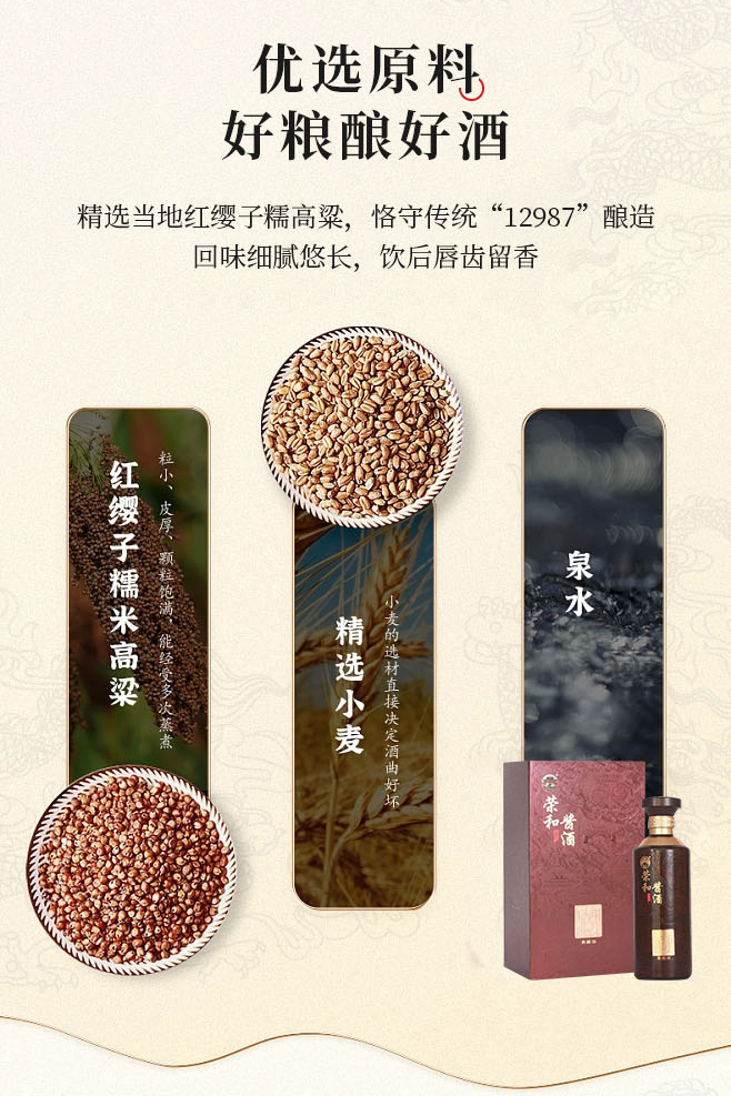 其中榮和經典酒以中庸和諧的思想為文化理念,提倡健康快樂、養身養心的生活方式,體現了“人生須盡歡、醬酒養千年”精神境界。2013年,“榮和燒房”干曲倉舊址被列為“全國重點文物保護單位”文化城至今保留“榮和燒房”的歷史見證。