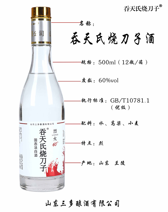 品名:吞天氏燒刀子酒 濃香型【60°500ml】