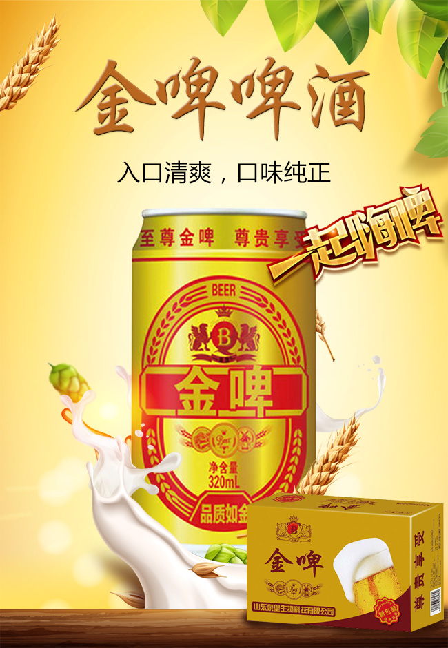 我公司精選優級進口麥芽、啤酒花、優級大米、上等酵母,采用優級純凈水,超低溫長時間發酵,啤酒風味保鮮技術密閉隔氧,全過程純凈化釀造,使酒液清澈透明,純凈自然,口味清爽,更加適合消費者的消費需求。合理的保持了啤酒的各種營養成分,其色澤金黃透明,泡沫潔白細膩、掛杯持久、純爽柔和、麥香味濃郁。