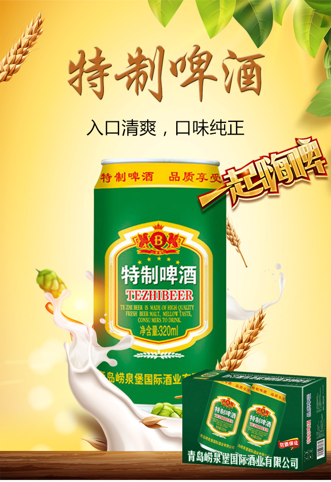 我公司精選優級進口麥芽、啤酒花、優級大米、上等酵母,采用優級純凈水,超低溫長時間發酵,啤酒風味保鮮技術密閉隔氧,全過程純凈化釀造,使酒液清澈透明,純凈自然,口味清爽,更加適合消費者的消費需求。合理的保持了啤酒的各種營養成分,其色澤金黃透明,泡沫潔白細膩、掛杯持久、純爽柔和、麥香味濃郁。