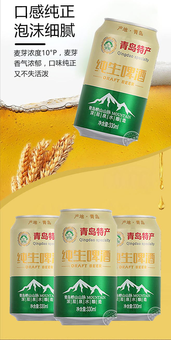 產品特點:入口清爽,突出的麥芽香氣,口味純正又不失活潑