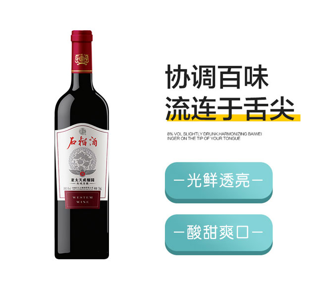 公司選擇名優石榴,經榨汁發酵,精心釀制而成。