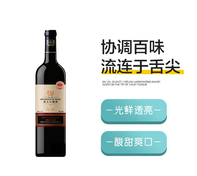公司選擇名優石榴,經榨汁發酵,精心釀制而成。