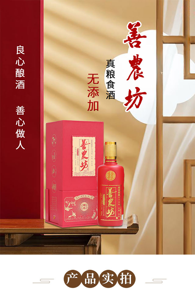 做中國酒界忠誠的傳承者,堅守老傳統(tǒng),堅持純糧釀造,為凈化中國白酒市場盡自己微薄之力,言行一致。“善農(nóng)坊”酒每一瓶都是天然、健康的“純糧固態(tài)發(fā)酵” 糧食酒。作為敢承諾地道糧食酒,以“純糧釀造、拒絕酒精勾兌”為善農(nóng)坊品牌使命,力爭做白酒行業(yè)的典范。