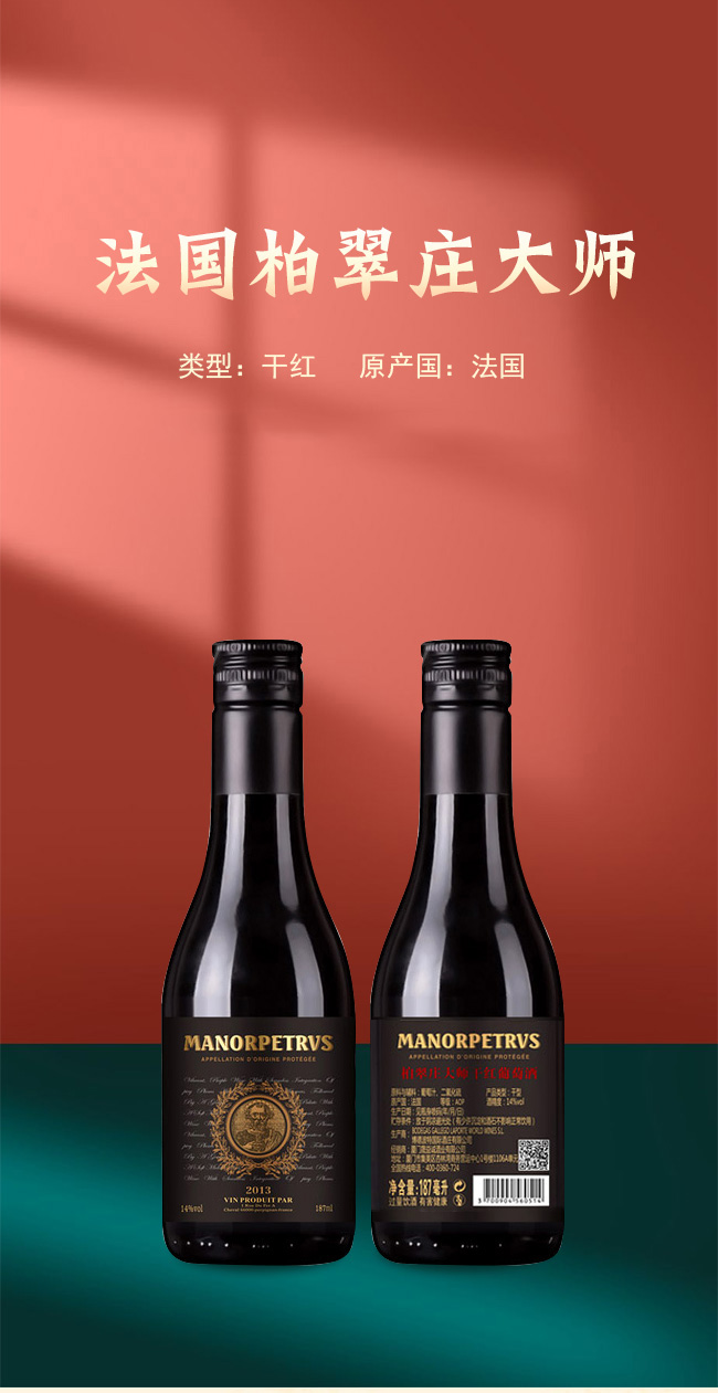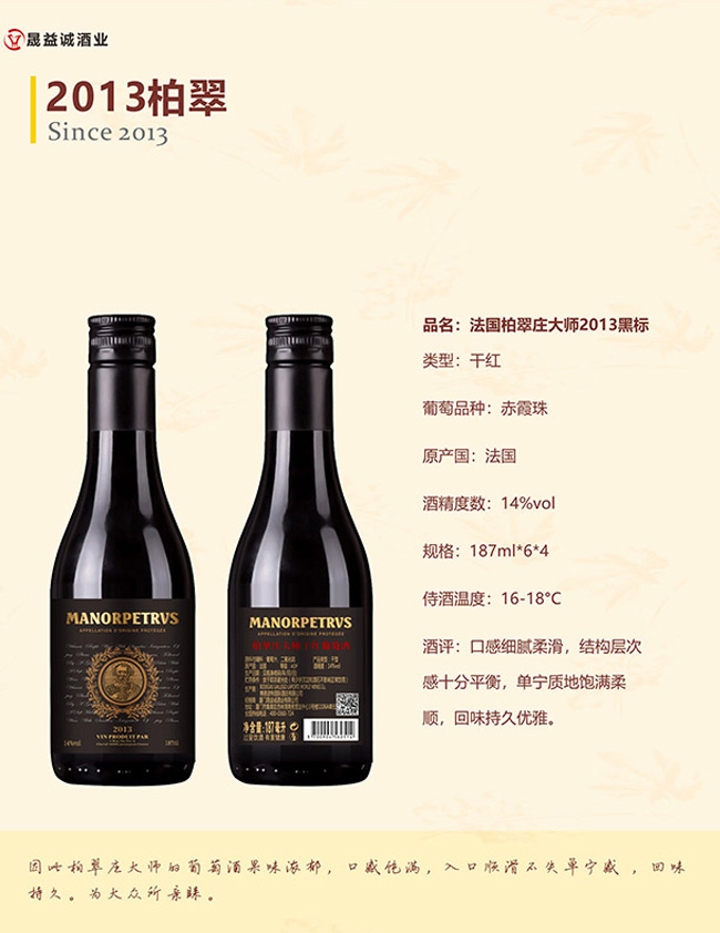 品名:法國柏翠莊大師干紅葡萄酒2013(黑標)【14° 187ml】