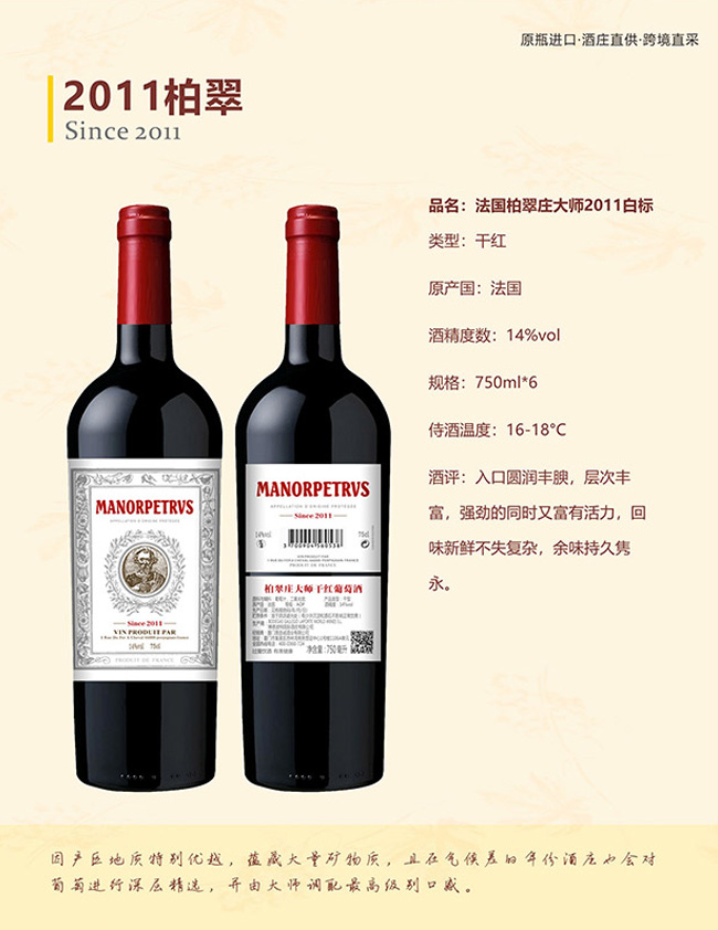 品名:法國柏翠莊大師干紅葡萄酒2011(白標)【14° 750ml】