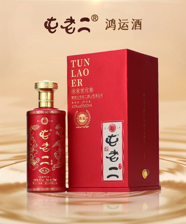 “屯老二”酒屬于濃香型白酒,但又有著優于其他濃香型白酒的特別之處;選取嫩江流域優質的深層地下水及東北糯紅高粱為主要原料,古法釀造;優選四川榮縣陶壇,成酒灌裝入壇后密封壇口,讓酒品在壇內自然老熟。出品酒體醇厚、綿柔、幽香、味正,形成獨特糧酒香氣。飲后不頭疼、不口干、醒酒快、體感舒適。