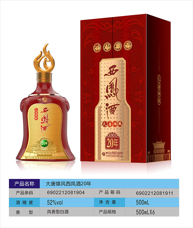 產品名:西鳳酒大唐雄風二十年 鳳香型【52°500ml】