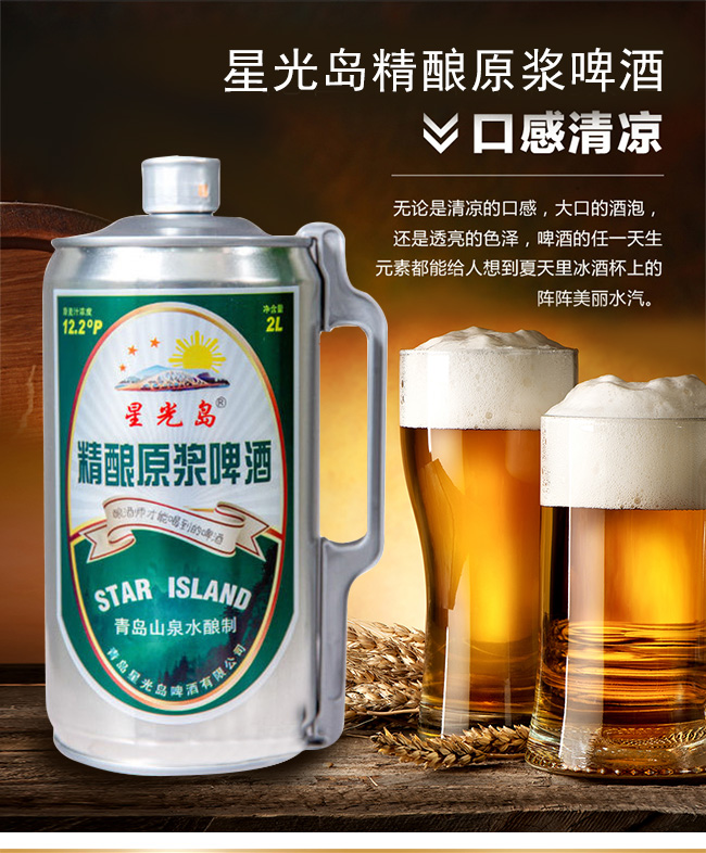 產品名稱:星光島精釀原漿啤酒【12.2°2L】