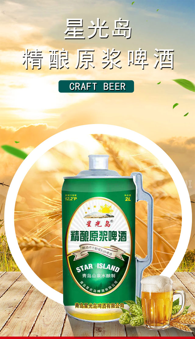 產品名稱:星光島精釀原漿啤酒綠罐【12.2°2L】