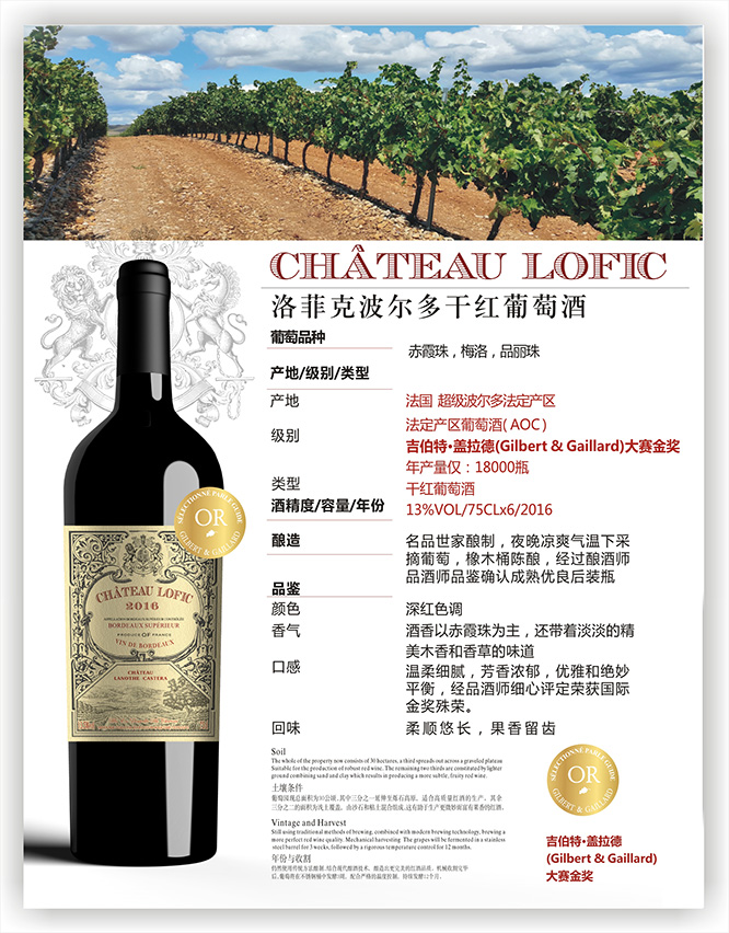 產(chǎn)品名:洛菲克波爾多干紅葡萄酒13°750ml