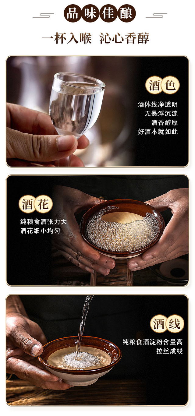 口感:入口綿甜,香味協調,醇厚爽冽,尾凈香長、風格突出