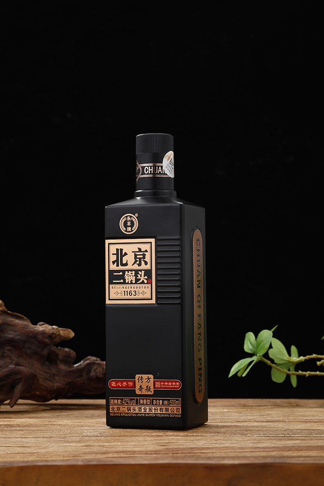 北京二鍋頭酒業股份有限公司,傳承老北京二鍋頭傳統釀造技藝,產品選用優質高粱為原料,以麩曲為糖化發酵劑,采用老五甑發酵法、混蒸混燒、看花接酒、掐頭去尾,長期儲存、精工勾兌而成。