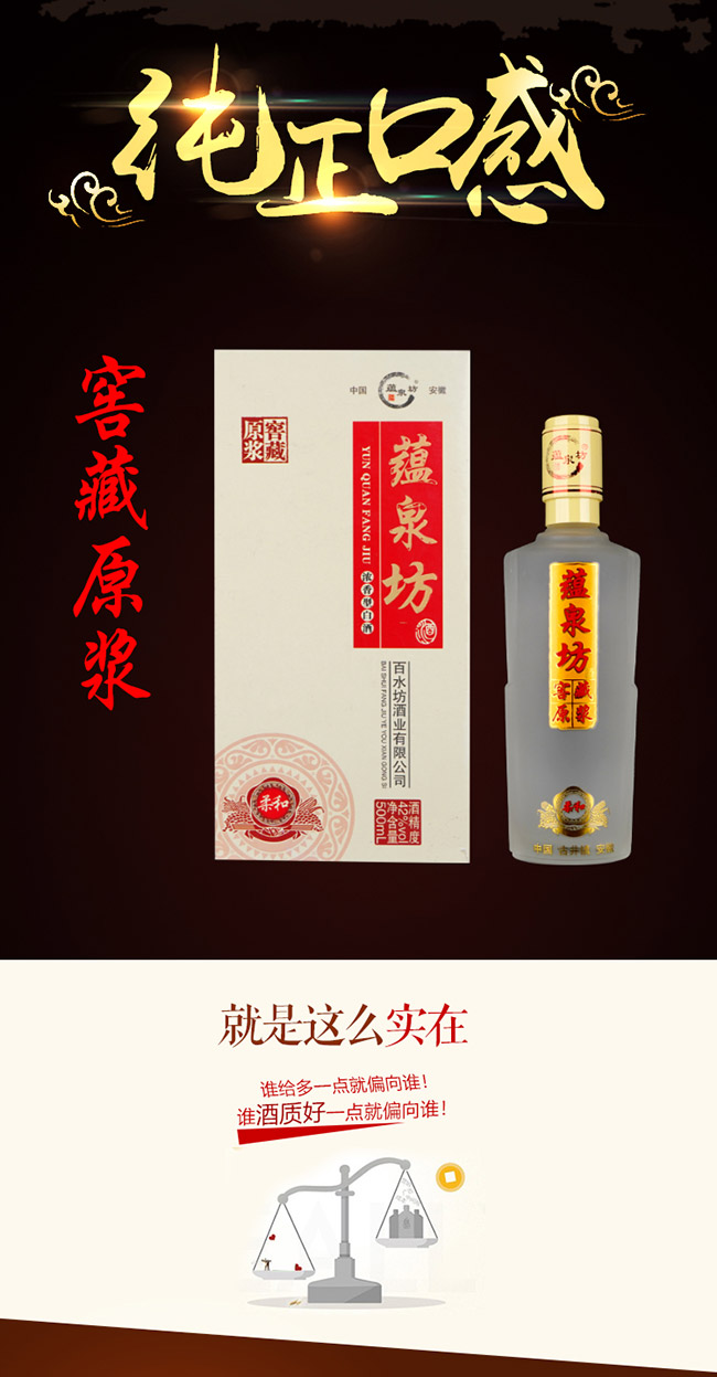 亳州市百水坊酒業有限公司,座落于名酒之鄉——安徽省亳州市古井鎮亳州市是歷史文化名城,是曹操、華佗的故鄉。更是名揚中外的酒鄉,公司生產的蘊泉坊系列酒均采用甘甜。清醇的古井水,優質飽滿的高粱等糧食為主要原料精心釀造的優質白酒,適合不同層次的消費者,深受廣大消費者的喜愛!