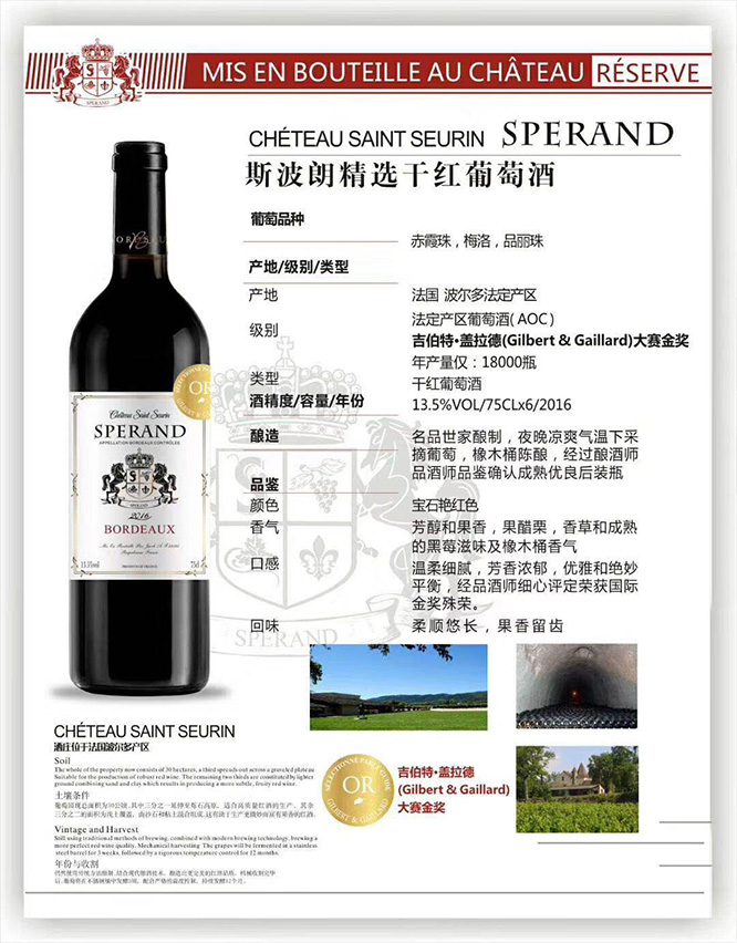 產(chǎn)品名:斯波朗精選干紅葡萄酒13.5°750ml