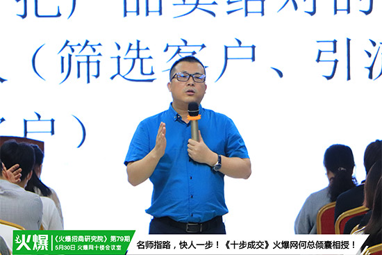 5月30日,由火爆網聯合創始人、總經理何仁平主講的火爆招商研究院第79期《十步成交》激情開講!為各企業學員重塑自身,實力為各企業學員答疑招商解惑,指導實戰,現場氣氛火熱,干貨不斷!